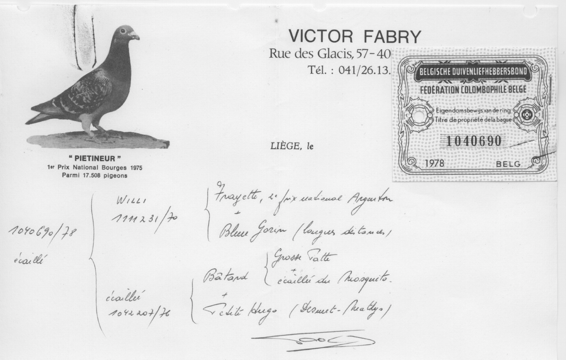 Pietineur - 1. Preis gegen 17.508 Tauben !